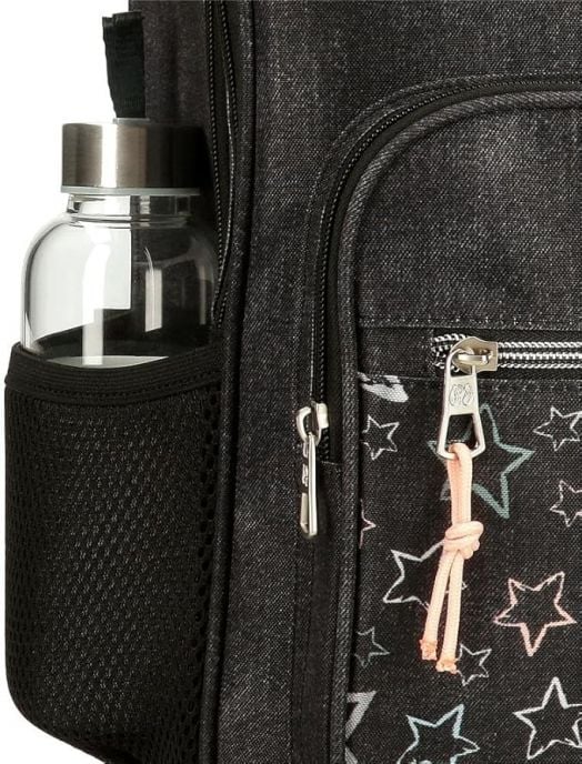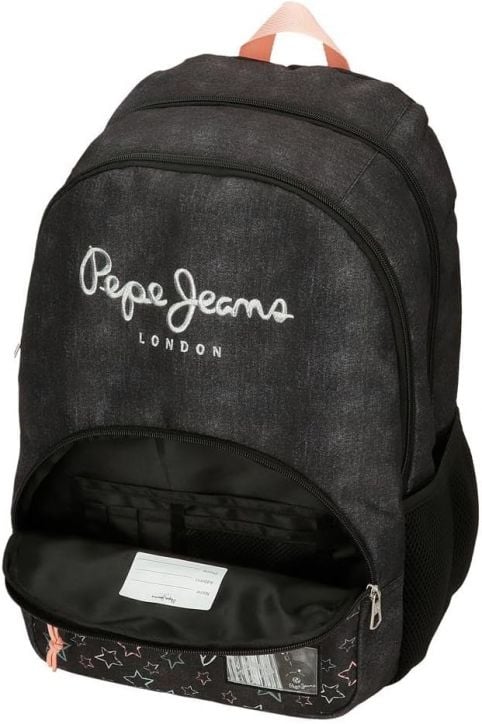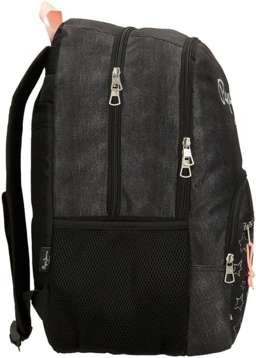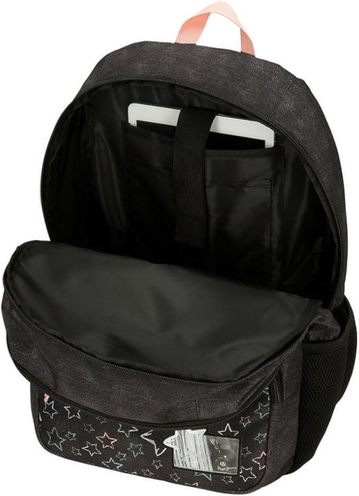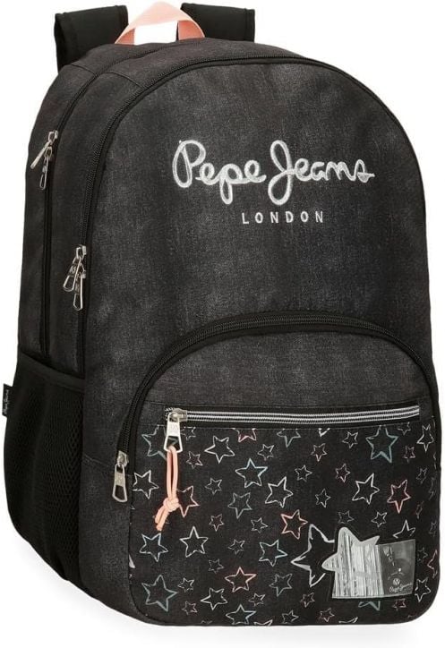 Голяма ученическа раница от серията Pepe Jeans Cintia на Joumma Bags и с десен в неповторим младежки стил - елегантен контраст на черно със сребристи звездички.