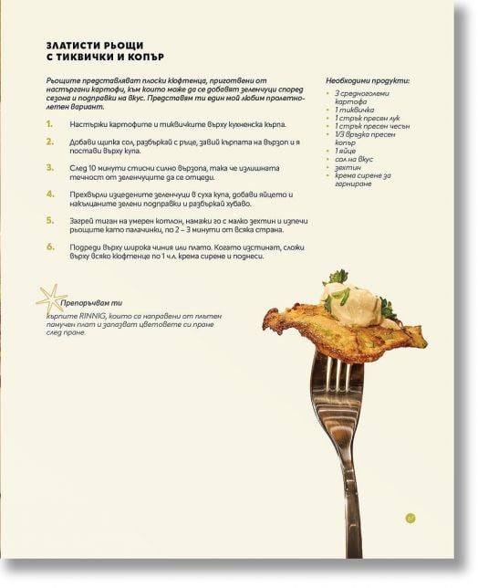 „Исках книга, която да живее върху кухненския плот – нещо, към което да посягаш всеки ден. Навиците започват от малки жестове: да съхраним по-добре храната, да планираме с мисъл, да използваме това, което вече имаме. Всичко това е грижа – и към нас, и към природата“ - Кристина Орсова.