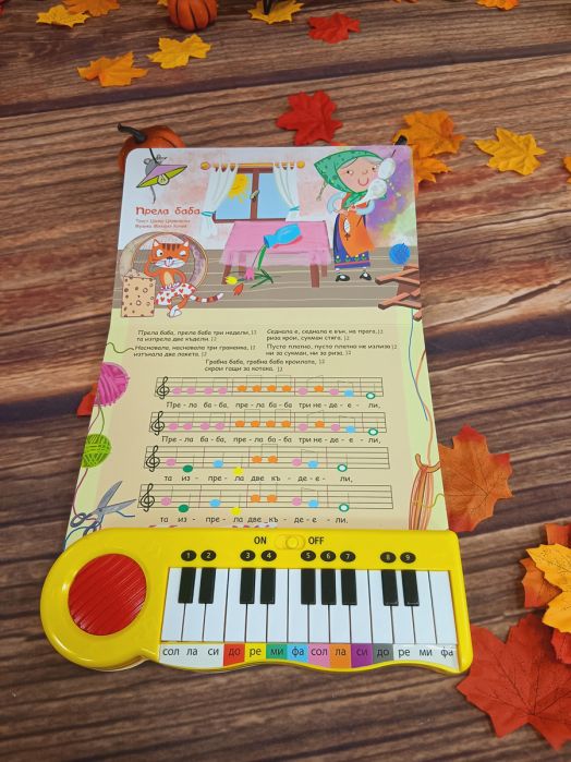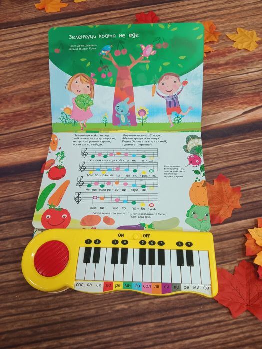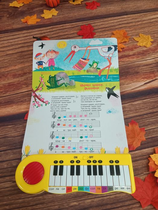 Детето само може да изсвири любимите си песнички, като спазва последователността на цветните клавиши.