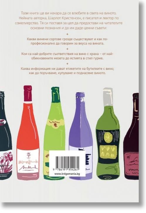 Нейната авторка, Шарлот Кристенсен, е писател и лектор по сомелиерство. Тя си поставя за цел да предостави на читателите основни познания и да им даде ценни съвети: