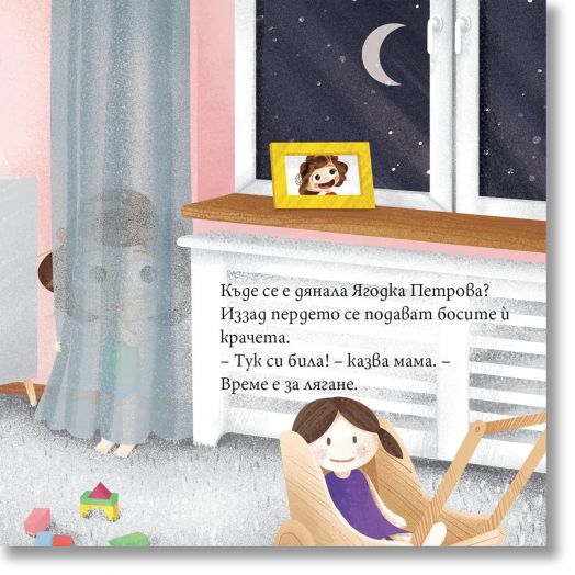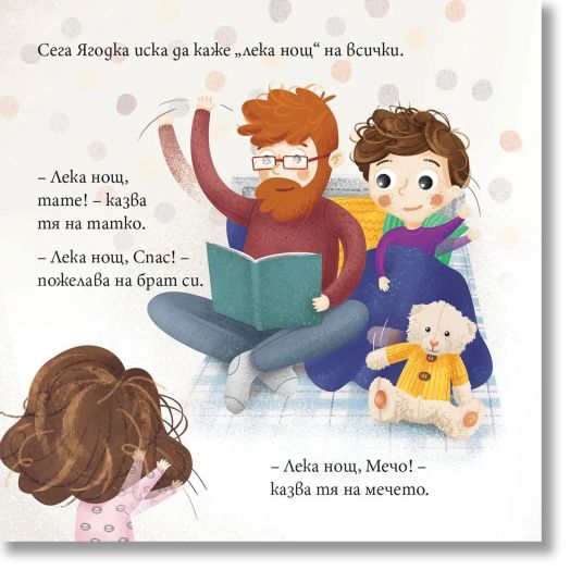 Малката Ягодка е облечена в пижама, ленивците на дрешката ѝ вече се прозяват, но… самата Ягодка още не е готова за сън!