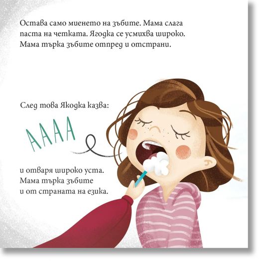 В тази топла и забавна история Ягодка Петрова превръща банята във весела водна площадка. Има плискане, играчки и много смях – докато не дойде моментът за миене на косата. Тогава се появяват страхът от водата в очите и нуждата от повече търпение и доверие.