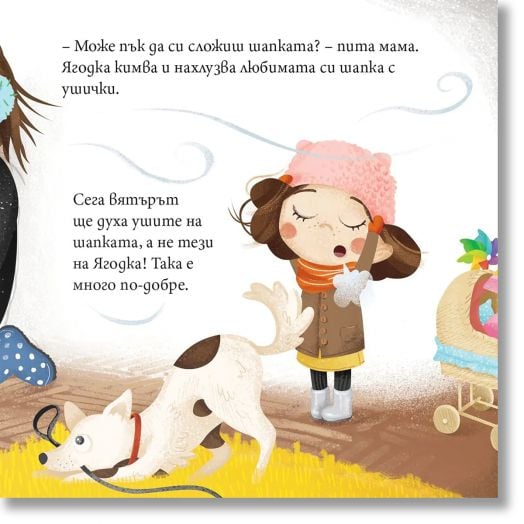 Навън духа вятър, вали и е мокро. Но това няма да я спре – тя си слага гумените ботушки, топло яке, шапка и ръкавички, и е готова за приключения с мама.