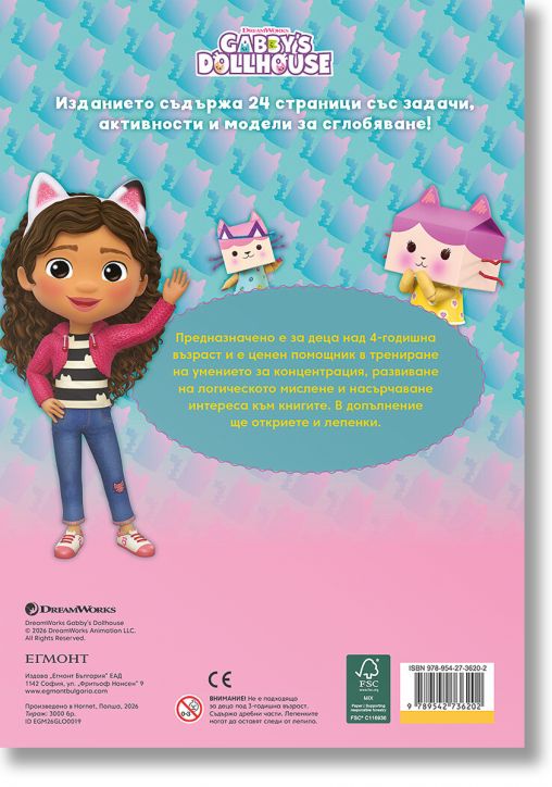 „Забава с лепенки: Къщата за кукли на Габи – книга 2“ е цветно и увлекателно занимателно издание, създадено специално за малките почитатели на Габи и нейния вълшебен свят.
