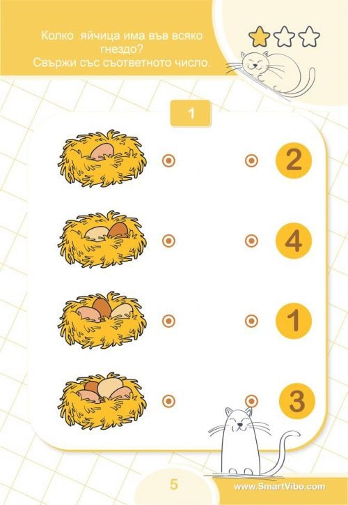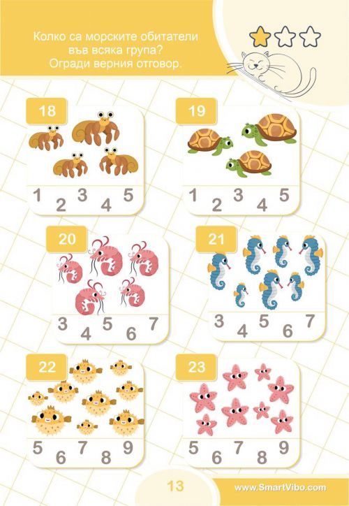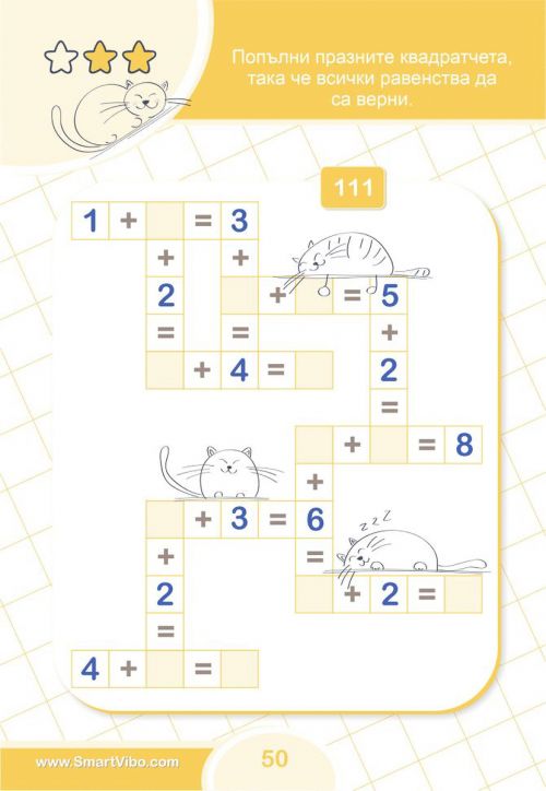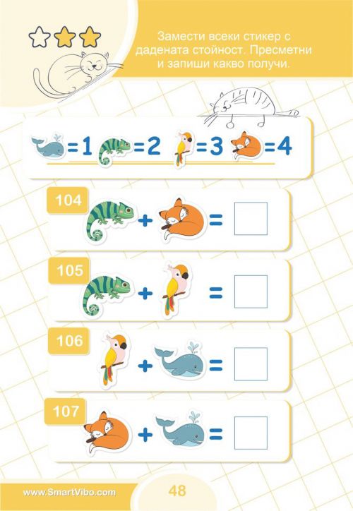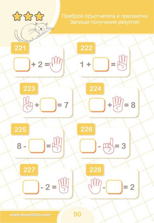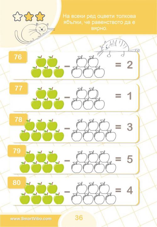 С упражненията в всяко дете неусетно ще придобие увереност и ще затвърди уменията си за събиране и изваждане, ще се научи да работи последователно и логично за достигане до вярното решение, ще се подготви за изпити и състезания.