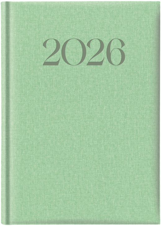 Зелен тефтер-органайзер Lediberg Biella с мултинационално тяло (осем езика, включително български) за 2026 година в A5 размер.