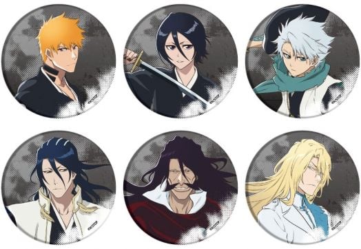 Дизайн: Баджовете включват популярни герои от поредицата Bleach: Thousand-Year Blood War, като Ичиго Куросаки, Рукия Кучики и други, представени в детайлни и стилни илюстрации с металически финиш.